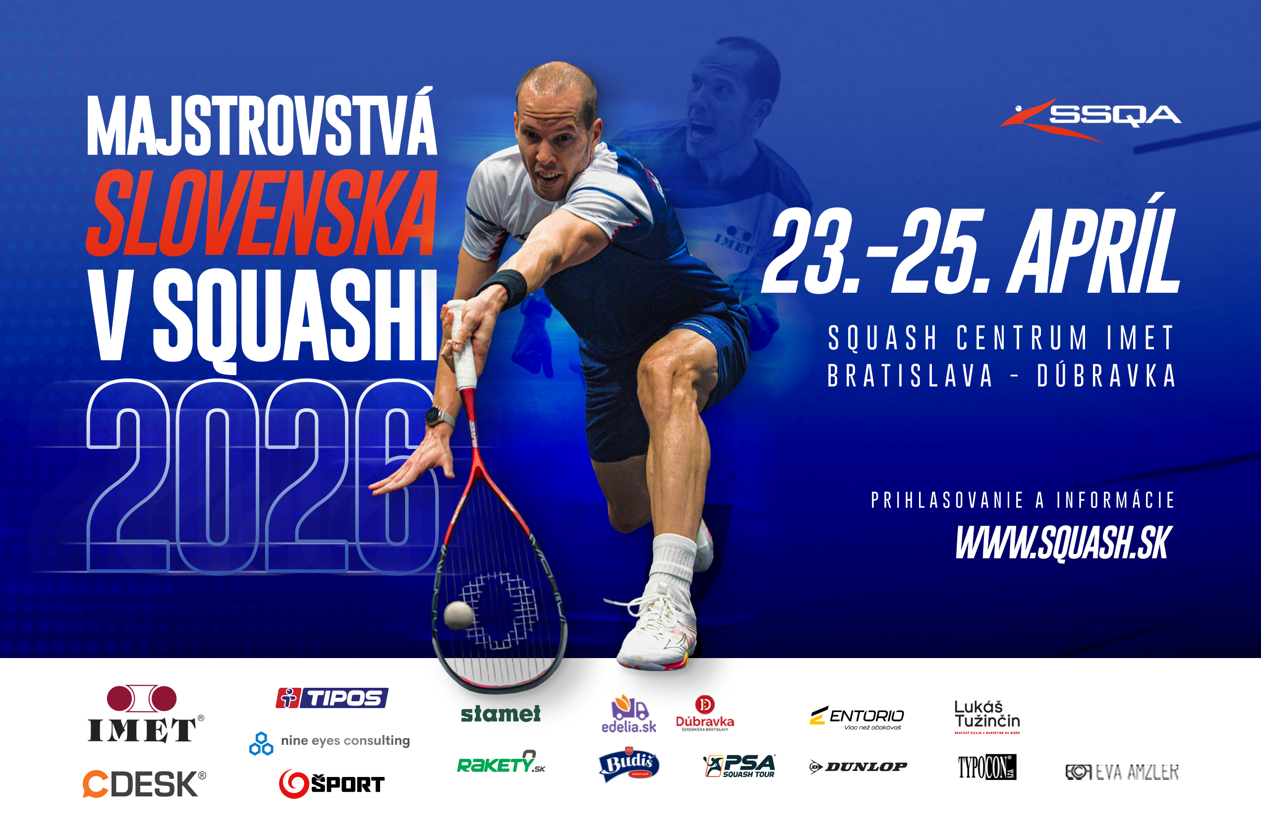Tohtoročný sviatok squashu sa uskutoční presne 23.-25. apríla 2026 a znova na pôde najúspešnejšieho squashového klubu na Slovensku - v IMET squash centre. Práve ich domáci hráč Tomáš Tóth bude obhajovať minuloročný triumf, kedy vo finále porazil Mateja Hrnčiříka 3:0 na sety a pripísal si tak na svoje konto už štvrtý titul Majstra Slovenska.
